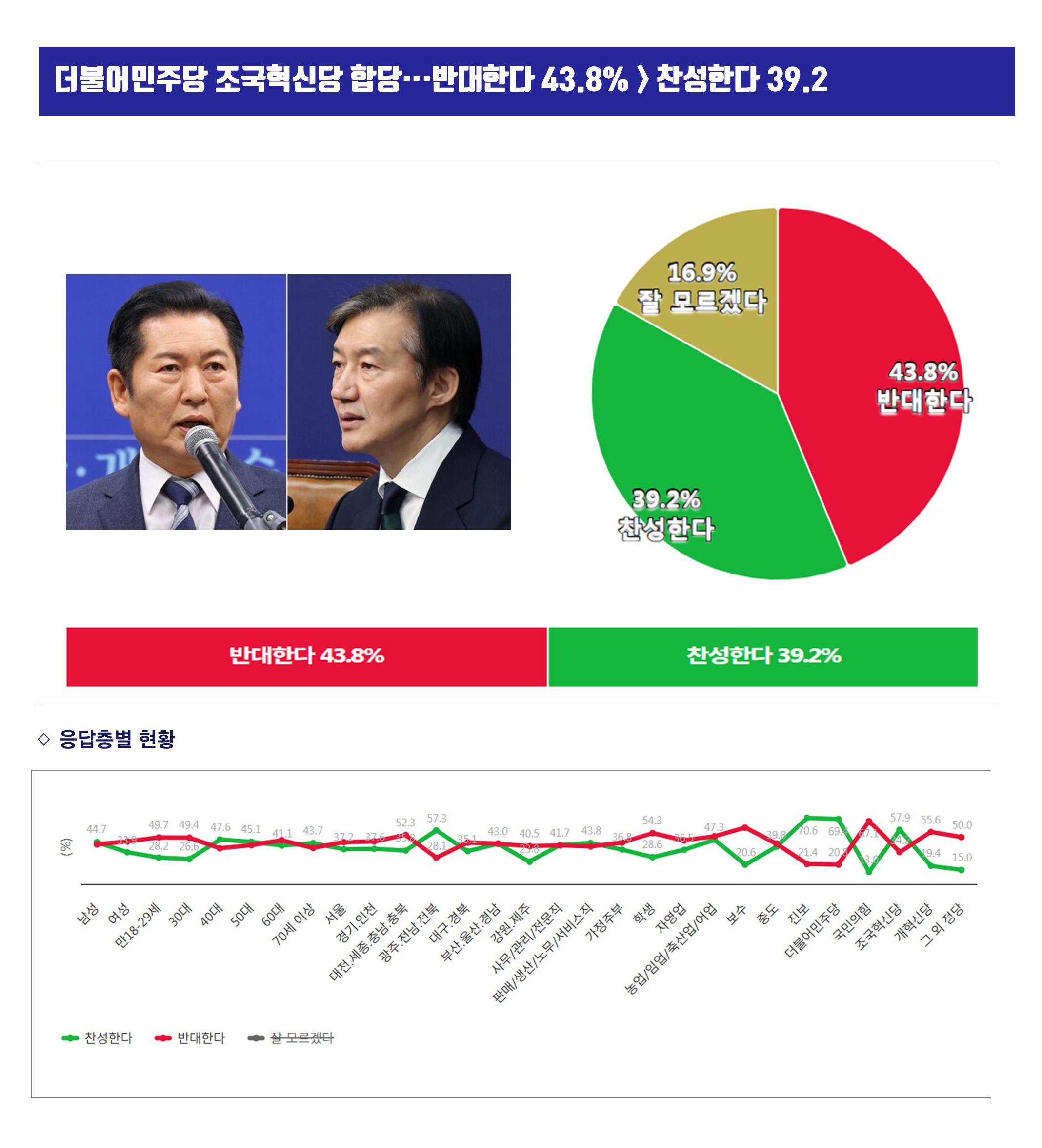 ¢Â ¹Ý´ëÇÑ´Ù¡¤¡¤¡¤±¹¹ÎÀÇÈû, º¸¼ö, °³Çõ½Å´ç, Çлý, ´ëÀü.¼¼Á¾.Ãæ³².ÃæºÏ ¼øÀ¸·Î, ¢Â Âù¼ºÇÑ´Ù¡¤¡¤¡¤Áøº¸, ´õºÒ¾î¹ÎÁÖ´ç, Á¶±¹Çõ½Å´ç, ±¤ÁÖ.Àü³².ÀüºÏ, 40´ë ¼øÀ¸·Î ³ô¾Æ ´õºÒ¾î¹ÎÁÖ´ç Á¶±¹Çõ½Å´ç ÇÕ´ç Âù¹Ý¡¤¡¤¡¤¹Ý´ëÇÑ´Ù 43.8% > Âù¼ºÇÑ´Ù 39.2%, °ÝÂ÷ 4.6...