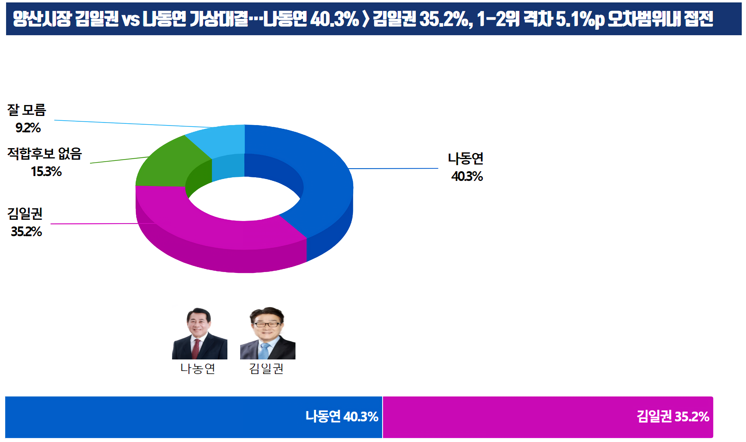 ¤ý¾ç»ê½ÃÀå ±èÀ챂 vs ³ªµ¿¿¬ °¡»ó´ë°á¡¤¡¤¡¤³ªµ¿¿¬ 40.3% > ±èÀ챂 35.2%, 1-2À§ °ÝÂ÷ 5.1%p ¿ÀÂ÷¹üÀ§³» Á¢Àü